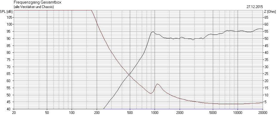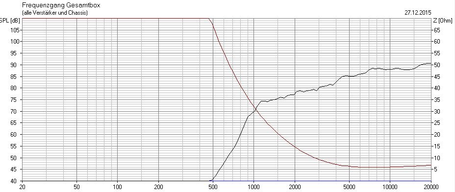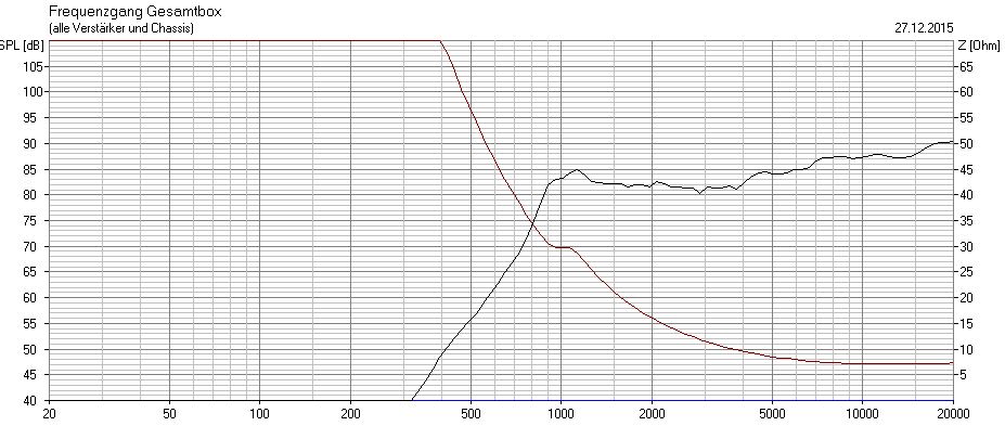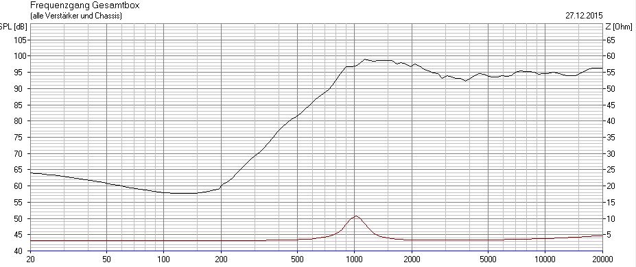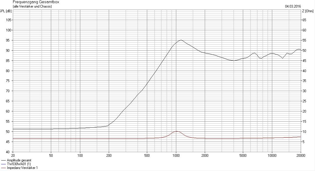 Der Frequenzgang reicht hiermit bis unter 1000 Hz was wahrscheinlich das Todesurteil für den Hochtöner wäre.