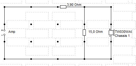 Die meisten passenden Tieftöner liegen eher bei 86-88 dB weshalb erst mal ein Spannungsteiler vor den Hochtöner geschaltet wird